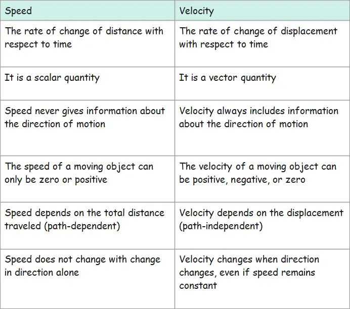 - The speed of an object can be positive or zero. It can not be negative.